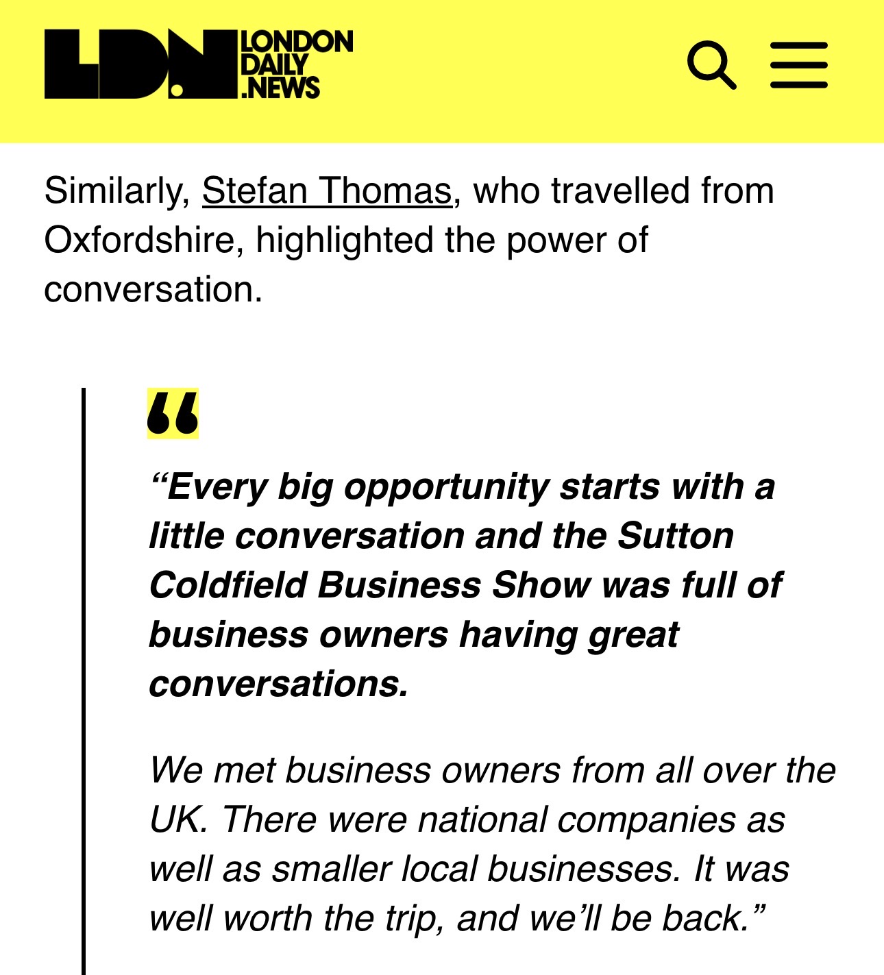 The Sutton Coldfield Business Show was fantastic, and I was pleased to be interviewed for the London Daily News about my appearance there. Here’s what I had to say